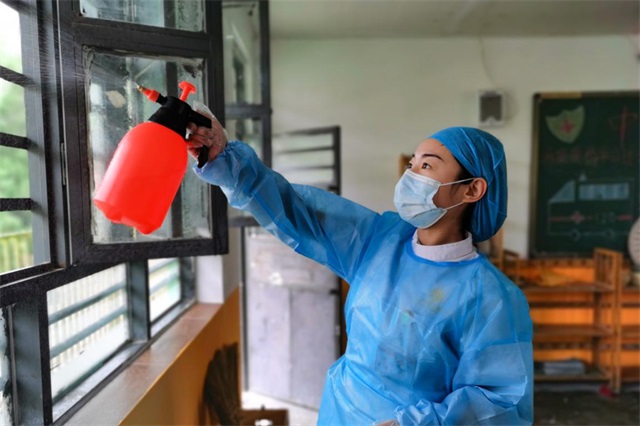 走进同心实验小学,只见志愿者们换上密不透风的防护服,背起50余斤重的雾炮枪,有的拿着喷洒壶,有的忙着拖地板……5月21日,在北京市同心实验小学,教师们、益家公益志愿者、天使公益志愿者们在教室里忙着打扫卫生、全面消毒,为即将到来的学生返校复课做好准备。