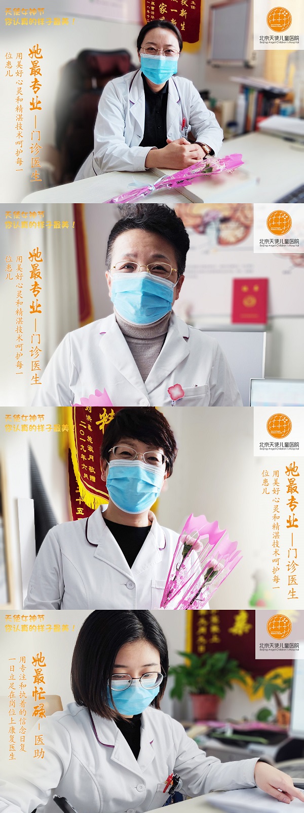 近年来,随着北京天使儿童医院医疗技术水平和业务的发展,医院女职工在各项医疗服务及岗位中扮演的角色越来越重要。在节日期间,为了能够保证看诊工作的正常进行,更好地为广大患儿服务,她们放弃了节日的休息时间,依旧坚持在岗位一线,把节日的喜悦融入到为患儿优质的医疗服务上。