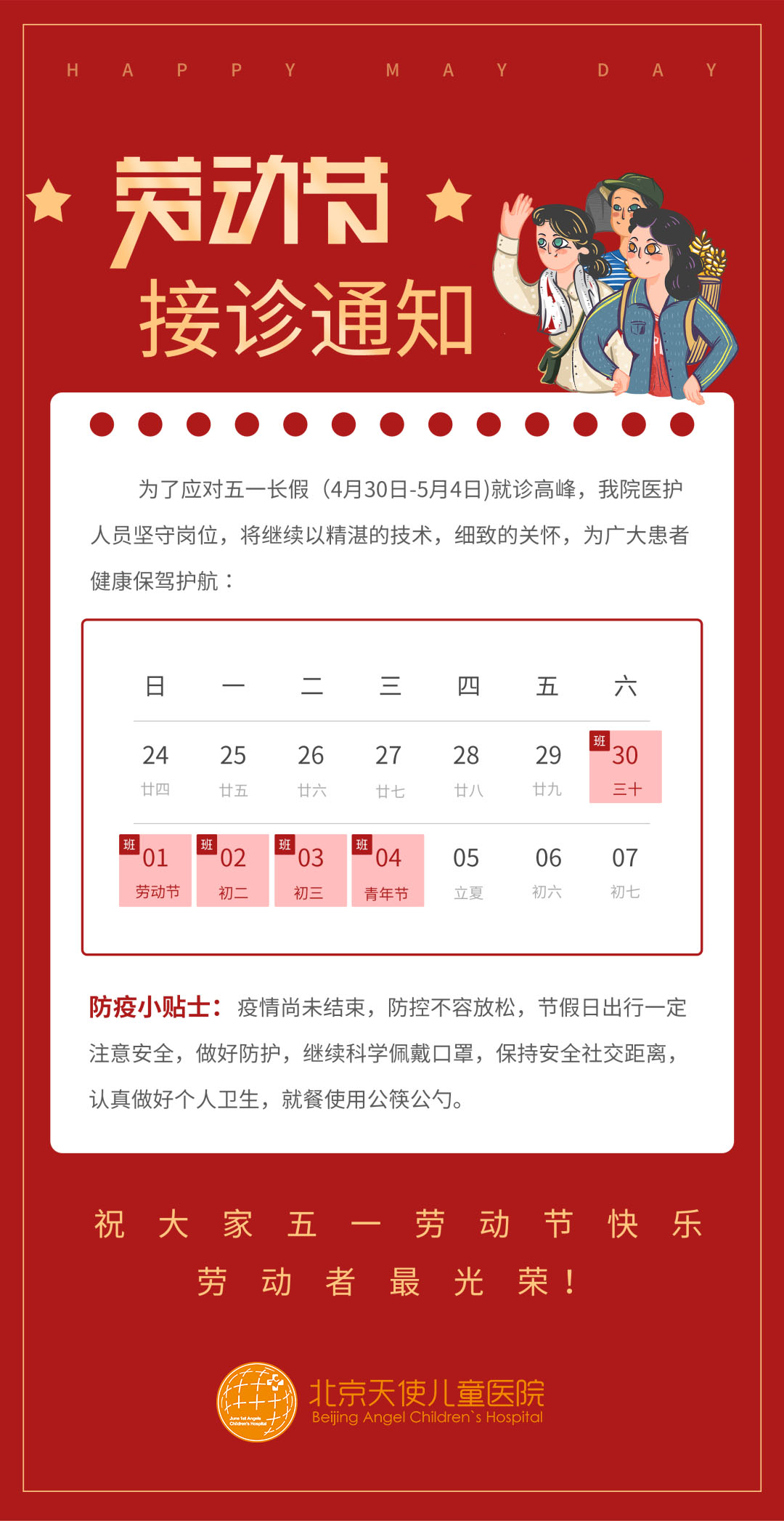 【通知】五一节假日,我院专家照常接诊,全力守护患儿的健康!