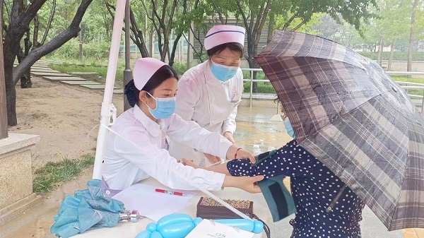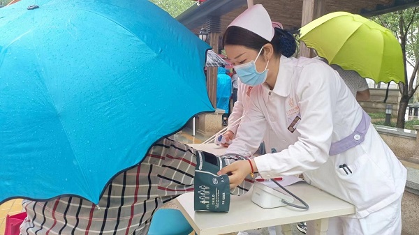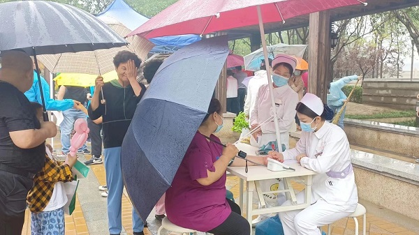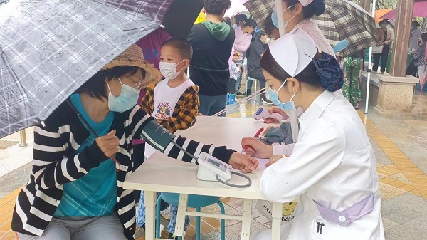 在义诊中,北京天使儿童医院实力骨干组成的医护团队为居民提供血压血糖检测、现场听诊、解答预约等服务。