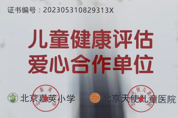 接下来就到了本次活动的一个重要环节,爱心需要助力,爱心需要保障,爱心需要天使的呵护。北京天使儿童医院与嘉英小学合作成立“儿童健康测评爱心合作单位”,天使将用实际行动来对儿童群体带来切实有效的帮助,通过精准医疗服务助力儿童心愿等多方面在学习生活上给予更多的关心和爱护。