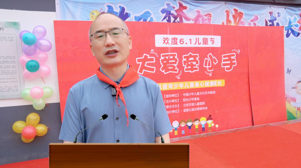 随后,北京天使儿童医院戈光辉院长在发言中表示:关心儿童健康成长是全社会共同的责任,作为专业的儿科医院更是不可或缺。医院自成立以来积极履行社会公益职责,关心关怀关注儿童身心健康,通过专业看诊、健康义诊、公益讲座、基金援助等形式给予儿童心理行为身心发展健康关爱。此次“小手大爱”六一公益活动开展儿童健康体检,义诊,并建立健康档案,同时联合阳光少年公益专项基金对困镜家庭儿童进行公益帮扶干预治疗,同时向嘉英小学捐献爱心物资。