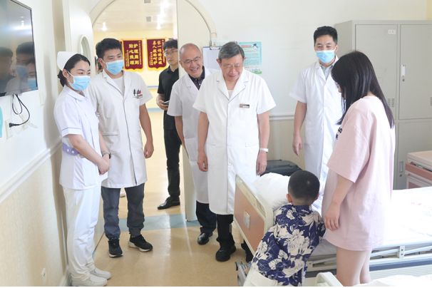 在戈院长的陪同下,唐教授走进儿童康复病房,与家属亲切交谈,详细询问多名患儿入院病情、在院治疗以及目前的疗效情况,为家属分析病情的同时鼓励家属树立信心,积极治疗。