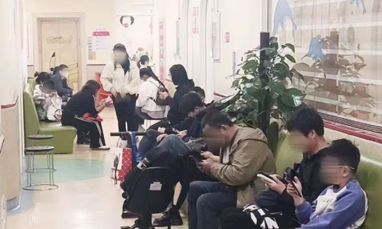 一大早就有很多家长前来排队,大厅里或坐或站的挤满了一脸焦虑的家长,他们翘首等待医生呼叫自家孩子的名字,躁动的身影出现在院内的每一个角落。焦虑和友爱在同一个空间里互相交织,映照出人世间最真实的生活图景。